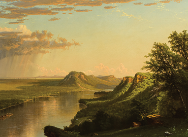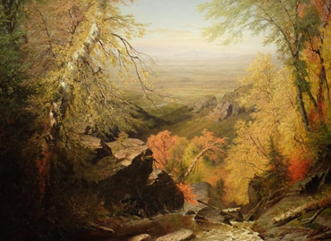 Hudson River School painters, like Church, often painted scenes like this one highlighting the idea of making a home in the wilderness to live in harmony with nature.