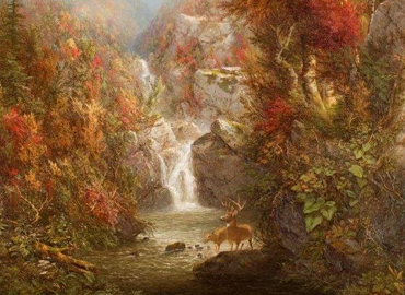Hudson River School painters, like Brown, often included deer in their composition to symbolize the innocence of the land before the arrival of man.