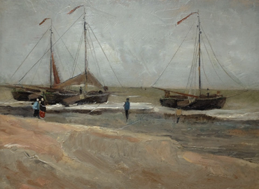 Whistler divides the sky, water, and beach into stark horizontal bands which gives this small landscape a modern feel.
