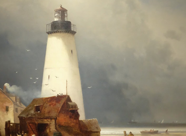 This is a painting of the oldest original lighthouse in the USA designed and built in 1764.