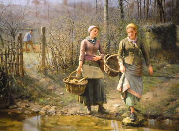 Ridgway Knight liked to paint the pleasant side of being a French peasant, or farm laborer, like being outside in nature, but in reality it was a hard job.