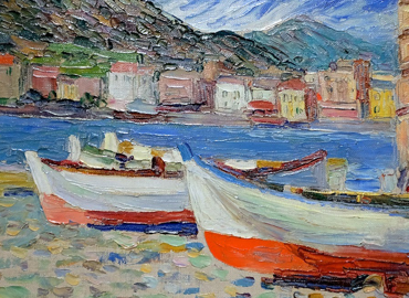 These colorful boats on the beach in Rapallo, Italy were a favorite subject matter of Kandinsky while he lived there for six months.